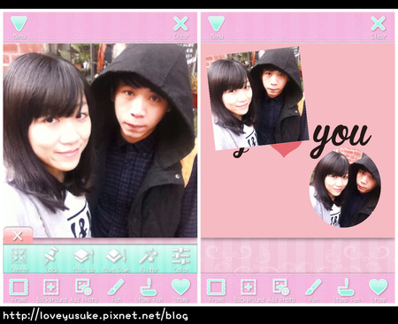 最後是跟老公的合照,字樣會跟著動唷!超級喜歡這個app,跟其它照片app有很大的區別