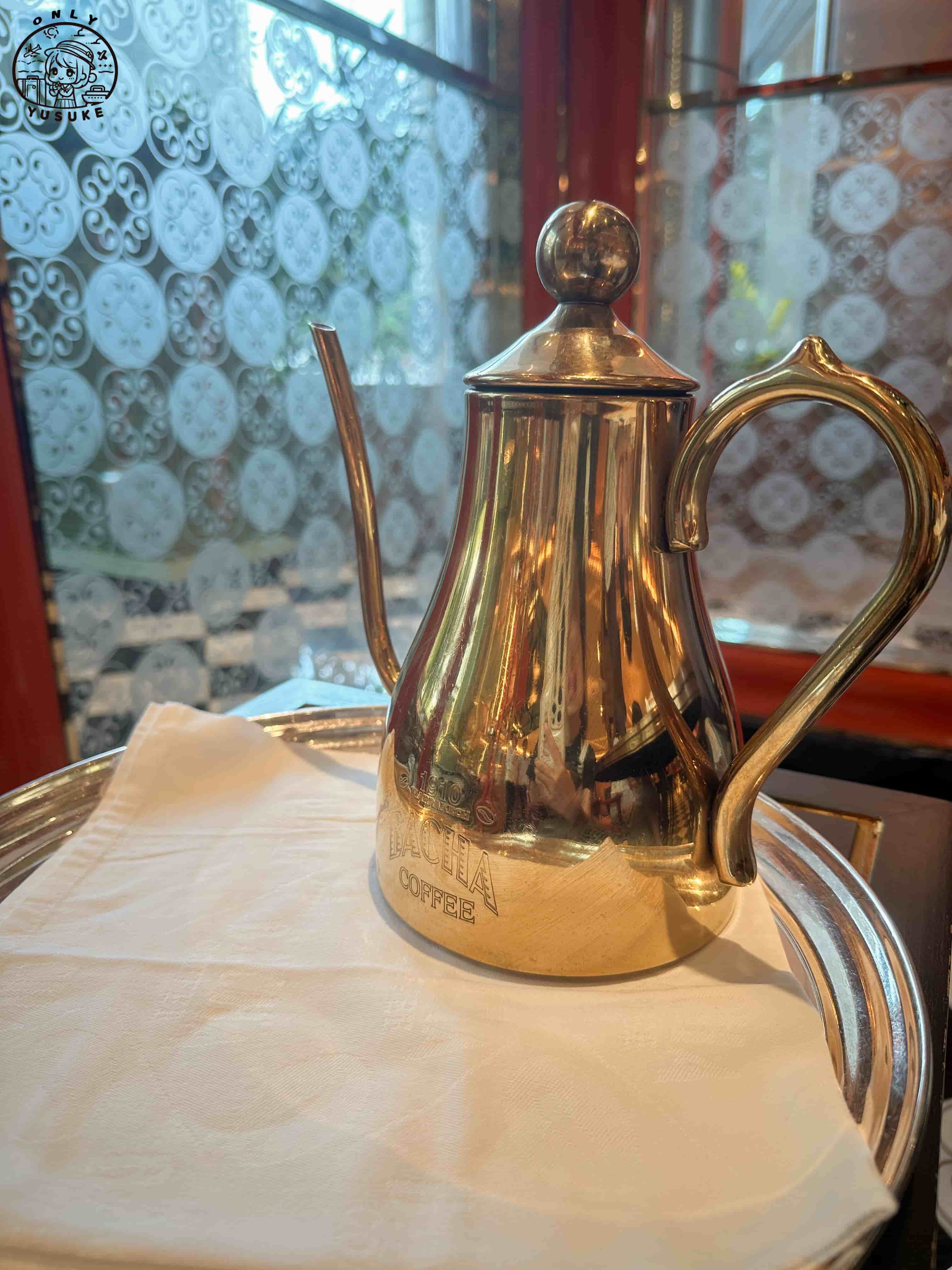 點選的咖啡是用咖啡壺盛裝,剛上桌時店員會幫客人倒第一杯,這個咖啡壺店內也有販售。